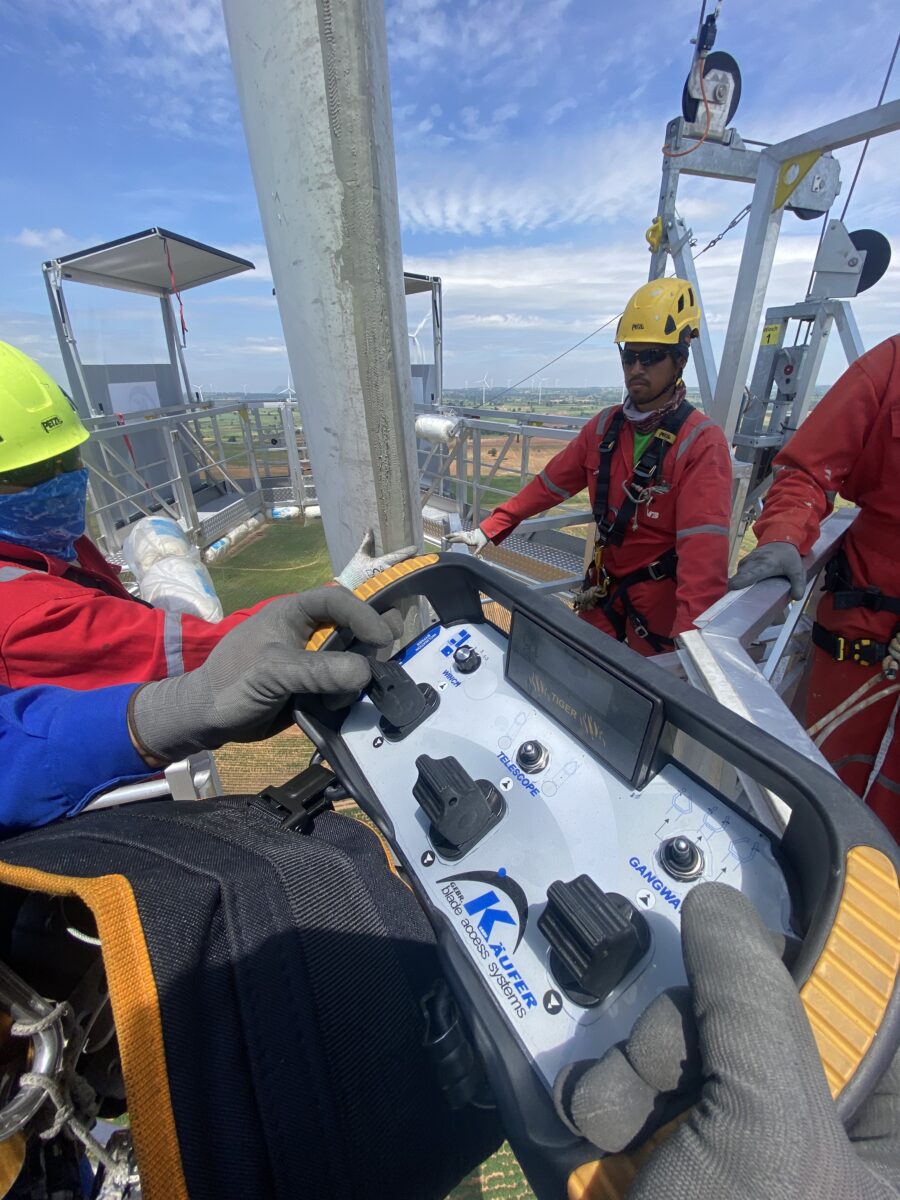 Firma Gebr. Käufer GmbH produkuje systemy dostępu do łopat wirnika i technologię dostępu do lądowych i morskich turbin wiatrowych od 1999 roku. Korzystając ze specjalnych platform linowych, technicy mogą w sposób bezpieczny i ergonomiczny poruszać się wzdłuż wieży lub poszczególnych łopat wirnika, dokonując ich inspekcji i naprawy krok po kroku.