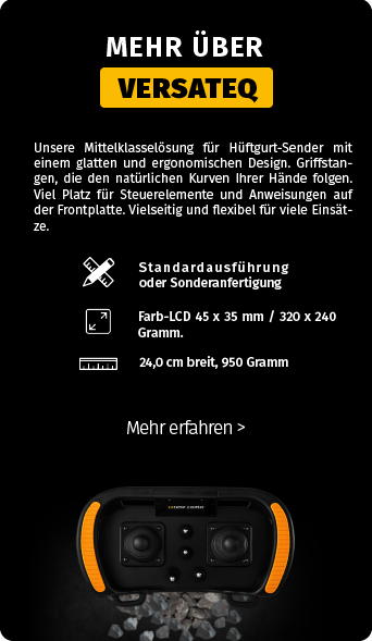 Tele Radio TEQ-Sender sind ideal für komplexe Anwendungen. Dank eines Nacken-/Schulter- oder eines Bauchgurtes können sie, im Gegensatz zu einem Handsender, beidhändig bedient werden. Die großen, stabilen Griffe sorgen zudem für ein entspanntes Arbeiten.