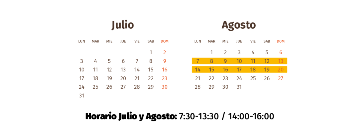 Lunes a viernes: 7.30 a 13.30h y 14.00 a 16.00h