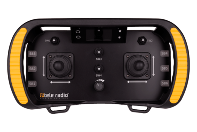 Actualmente ofrecemos tres mandos joysticks, también denominados mandos tipo pupitre. Todos los modelos disponen de pantalla a color en su versión estándar, esto aporta una mejor interacción entre el usuario y el mando (registro del transmisor en el receptor, reemplazo de otro transmisor, cambio de canal, zona horaria, etc..), además de mostrar valores importantes en la pantalla principal (nivel de batería, señal de comunicación, canal de frecuencia y la hora). El transmisor más compacto es el modelo T26 (con pantalla compacta, 4x botones laterales y una batería Li-ion) y el más grande el modelo T24 (con pantalla, 4x botones inductivos a los lados de la misma, 6x botones laterales y 2x baterías Li-ion intercambiables). Todos los mandos incorporan LED para iluminación del panel de control, detección de presencia del operador, sensor de impacto / caída / inclinación del transmisor y comunicación en paralelo para diagnóstico. Brindamos la opción de personalización a medida de las necesidades del proyecto, se configurarán según sus especificaciones, cada botón, selector, joystick o palas lineales. La placa frontal puede personalizarse mediante impresión a todo color o grabada mediante láser, la elección es suya.
