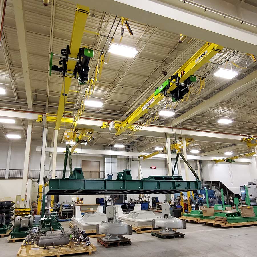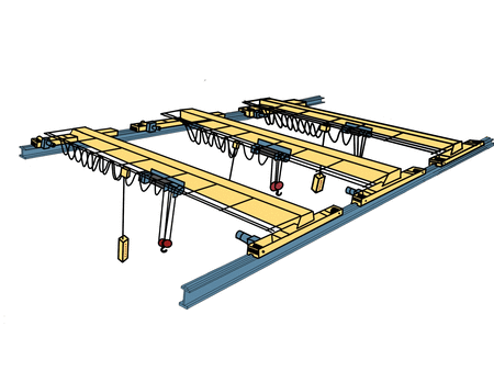 Otra situación que requiere de un equipo avanzado e intercomunicado es cuando añadimos a la ecuación un tercer puente grúa en la misma nave. Necesario cuando las cargas a manipular son de aún mayores dimensiones y gran tonelaje. Muy común en industria eólica para elevar las enormes torres eólicas y sus piezas.