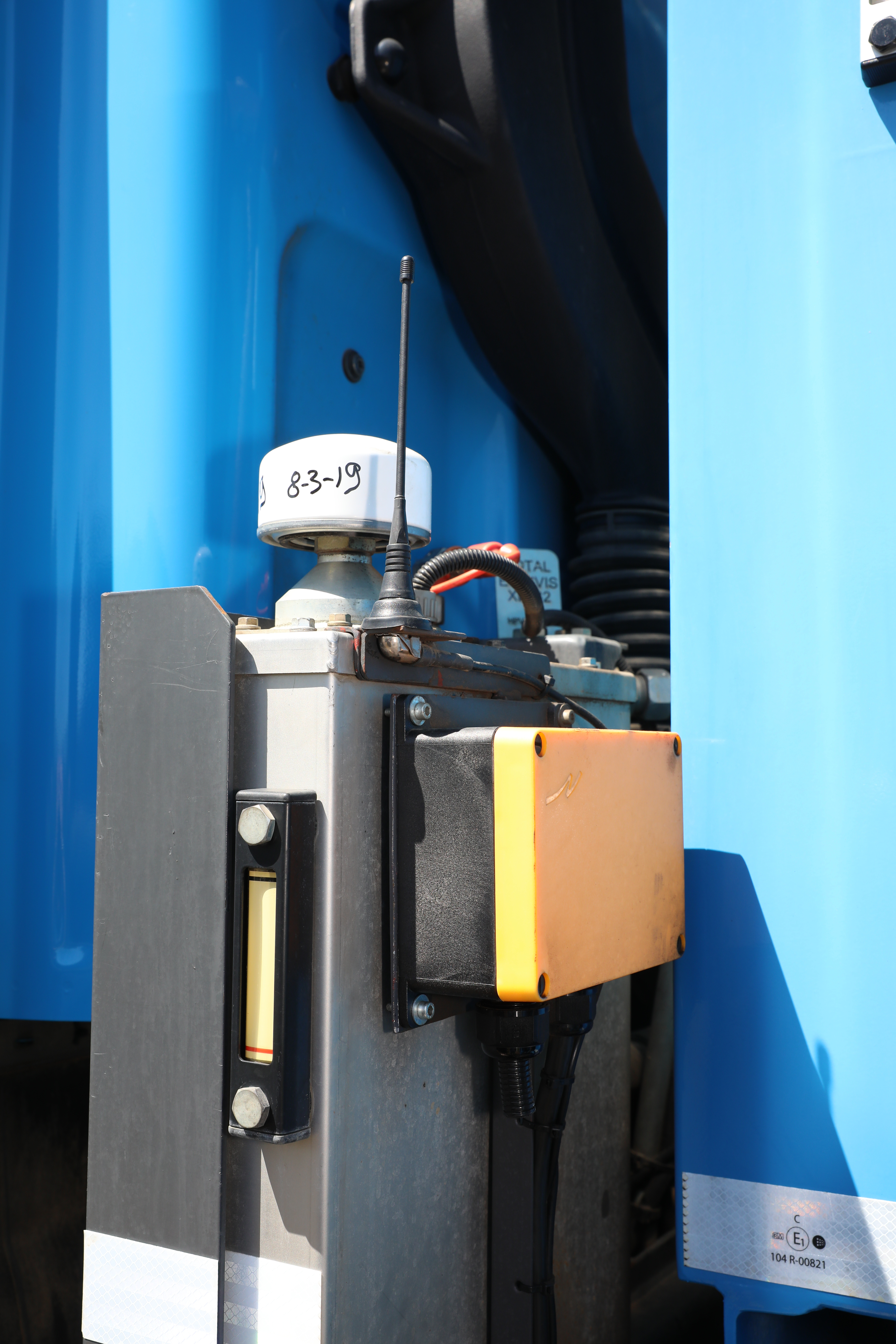 Jurgen is very positive about the Tele Radio remote control. “Truck dealer Van Ginkel did the installation. It works smoothly, interference free, very precise and absolutely reliable. From any location I can move the truck, sitting on the loader crane, but also standing next to the truck. Besides the system is robust and 100% safe.” Jurgen shows that the casing is stupid proof and that the system exactly does what he wants. Moving can be done to a single centimetre. When Jurgen releases the joystick, the truck stops immediately. Jurgen shows that he can drive forwards and backwards with the remote control, can steer and accelerate from a slope. The maximum speed is 5 km/h. Driving is only done in first gear. “When I laid a couple of dock boards and I need to move the truck, I grab the remote control and can see the front of my truck on a screen that is on my loader crane.” There are no sensors on the Ginaf truck. This is done on purpose. “Often we have to move through narrow spaces. Sensors limit the possibilities.”