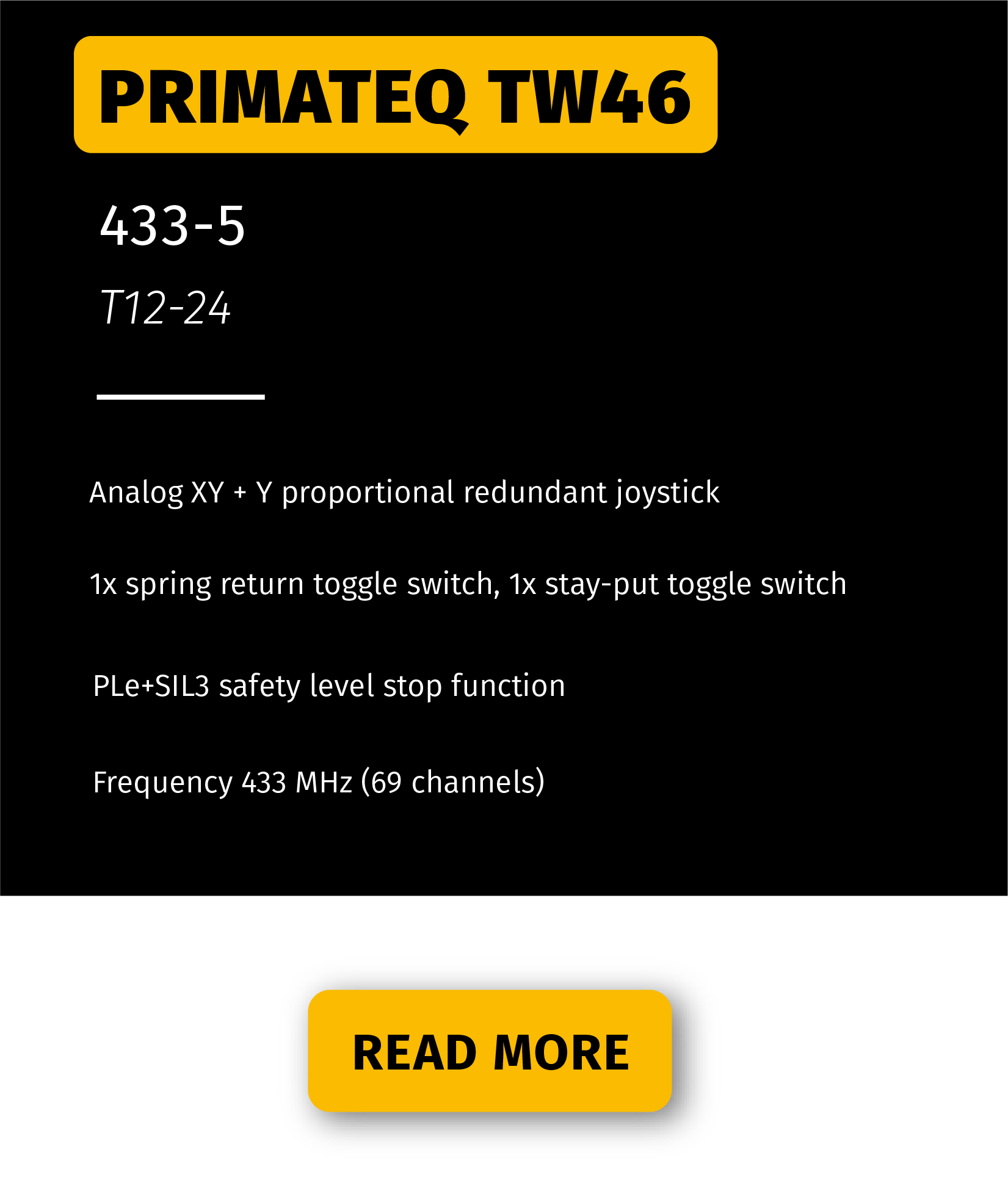 Our products are innovative. Tele Radio PrimaTEQ combines the use of smart software, special protocols, quality components, and a robust and ergonomically designed housing. Tele Radio PrimaTEQ offers a reliable and secure wireless remote solution with the following, special features and possibilities.