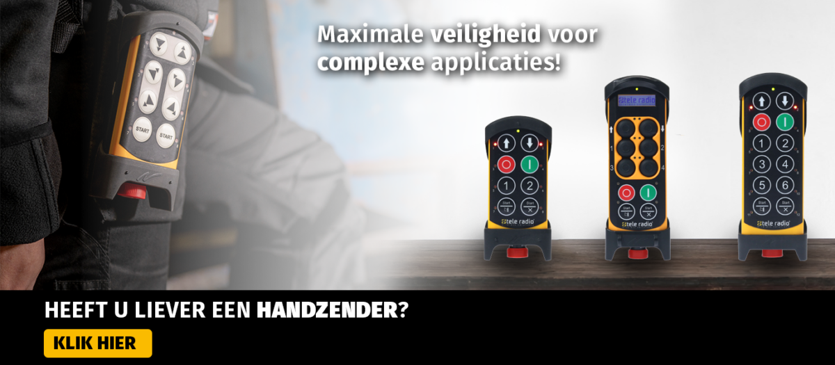 Voor de meest complexe besturingen zijn er de Tele Radio heupzenders die worden gedragen door middel van een nek-, schouder- of heupriem. In tegenstelling tot onze handzenders bieden ze de mogelijkheid voor bediening met twee handen. De grote, stevige handgrepen zorgen voor een ontspannen werkhouding.
