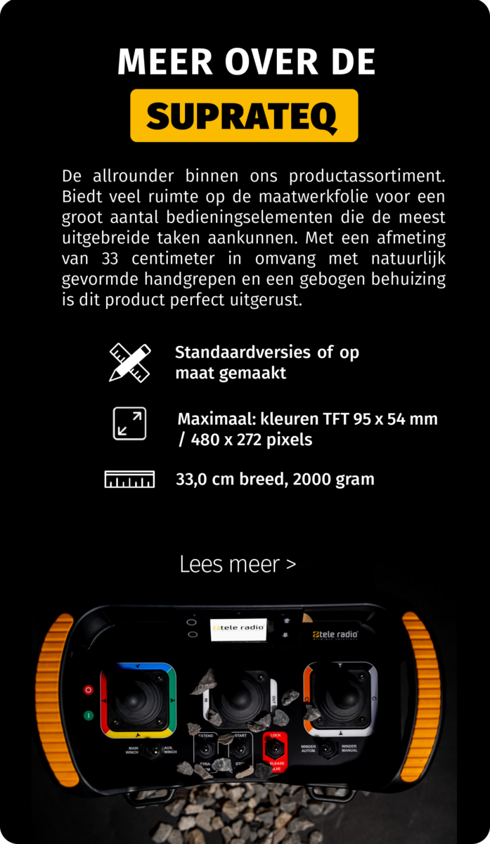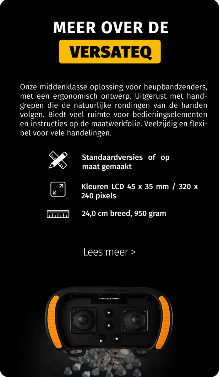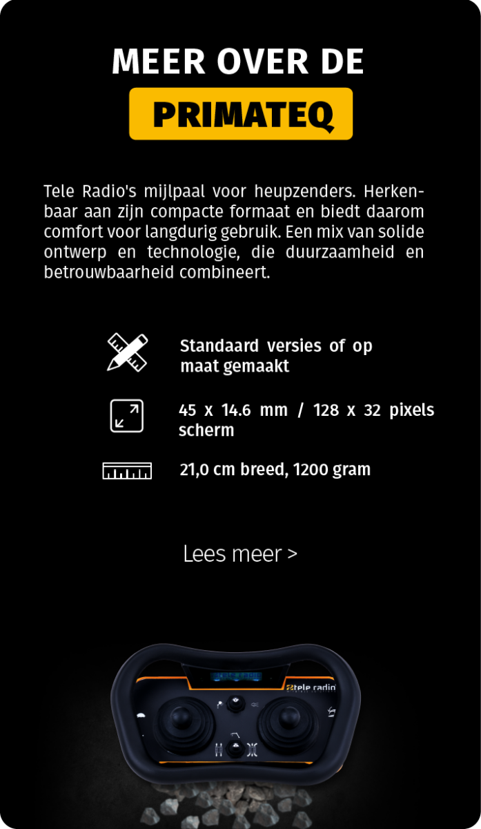Bent u op zoek naar een zender voor een (min of meer) standaardtoepassing? Dan raden wij u aan om te kiezen voor de PrimaTEQ, VersaTEQ of SupraTEQ Basic Line uitvoering. Deze zenders hebben een vaste set bedieningen, zijn goed instelbaar, hebben een onafhankelijk gecertificeerde noodstop, en bieden de beste prijs/kwaliteit verhouding.
