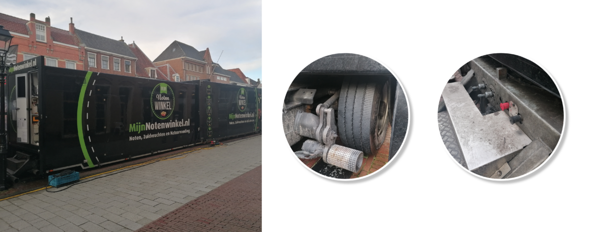 De Wagen van Mijnnotenwinkel.nl van Martin Hullekes en Joery Cozijnsen is 9 meter lang. Dankzij de elektronische afstandsbediening van fabrikant Tele Radio is het positioneren van de wagen een peulenschilletje geworden.