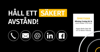Håll ett säkert avstånd och kontakta oss via mail eller telefonnummer.